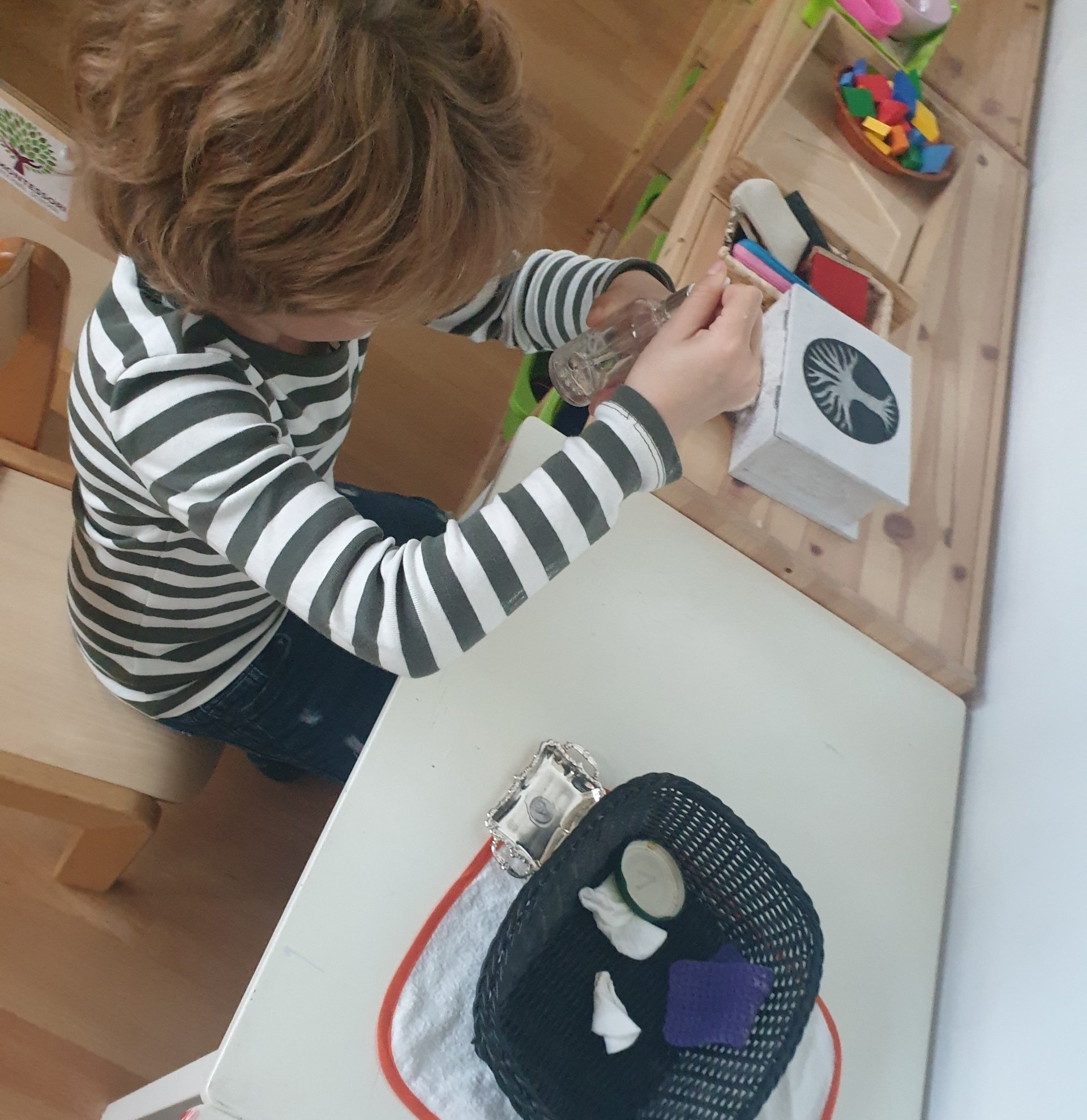 En el área de Vida Práctica, los niños aprenden a realizar tareas de la vida cotidiana como pulir objetos de diferentes materiales como plata de forma cuidadosa trabajando así su motricidad fina y siguiendo una serie de pasos ordenados a la vez que aprenden sobre los materiales y sus cualidades.