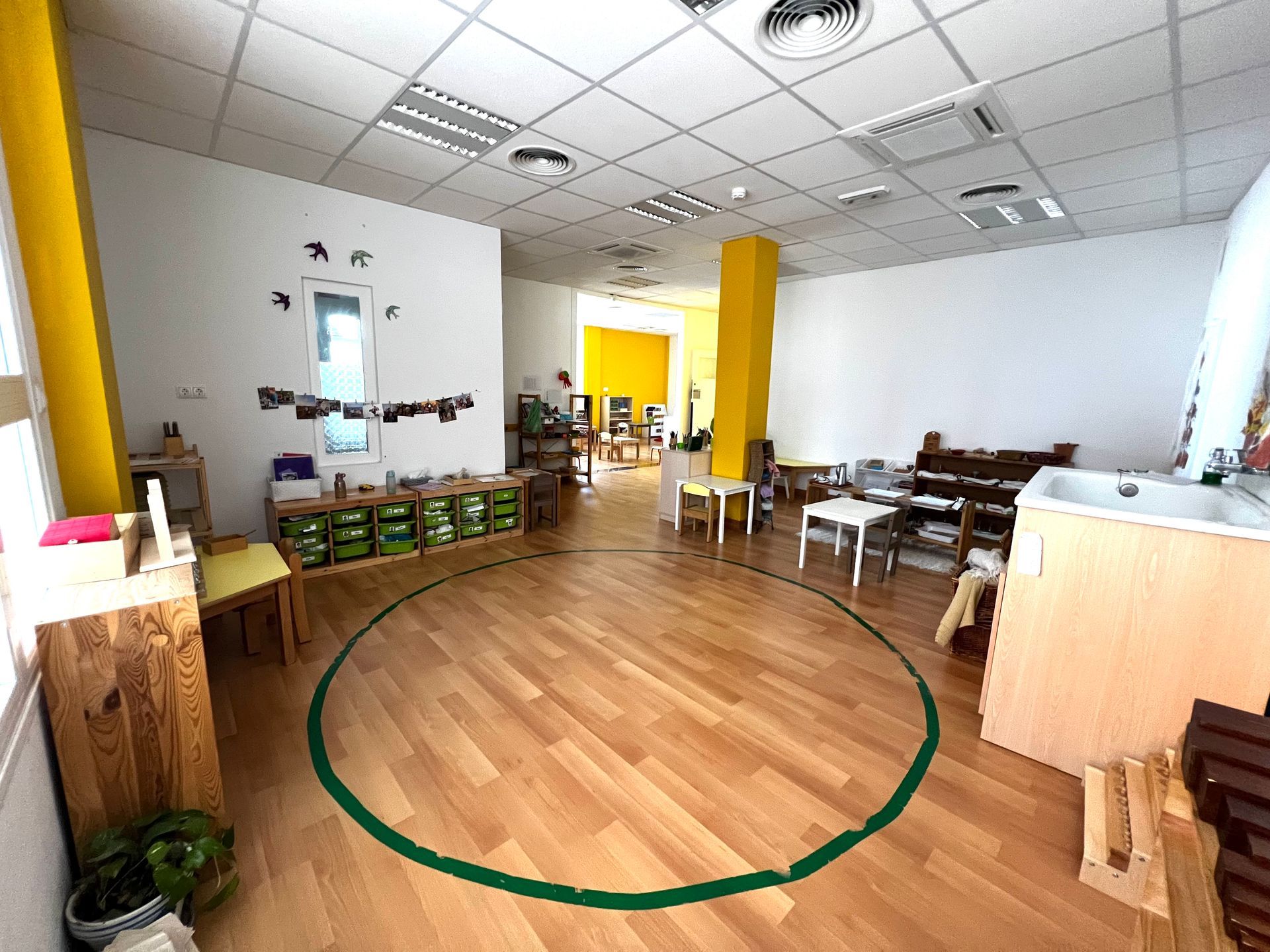 El edificio del colegio cuenta con múltiples aulas Montessori, cada una diseñada específicamente para facilitar la educación personalizada de los niños. Cada aula está equipada con materiales y herramientas de aprendizaje Montessori, y cuenta con áreas de trabajo para que los niños puedan explorar y aprender a su propio ritmo. Además, el colegio cuenta con una biblioteca y un laboratorio de ciencias para que los estudiantes tengan acceso a recursos educativos adicionales.