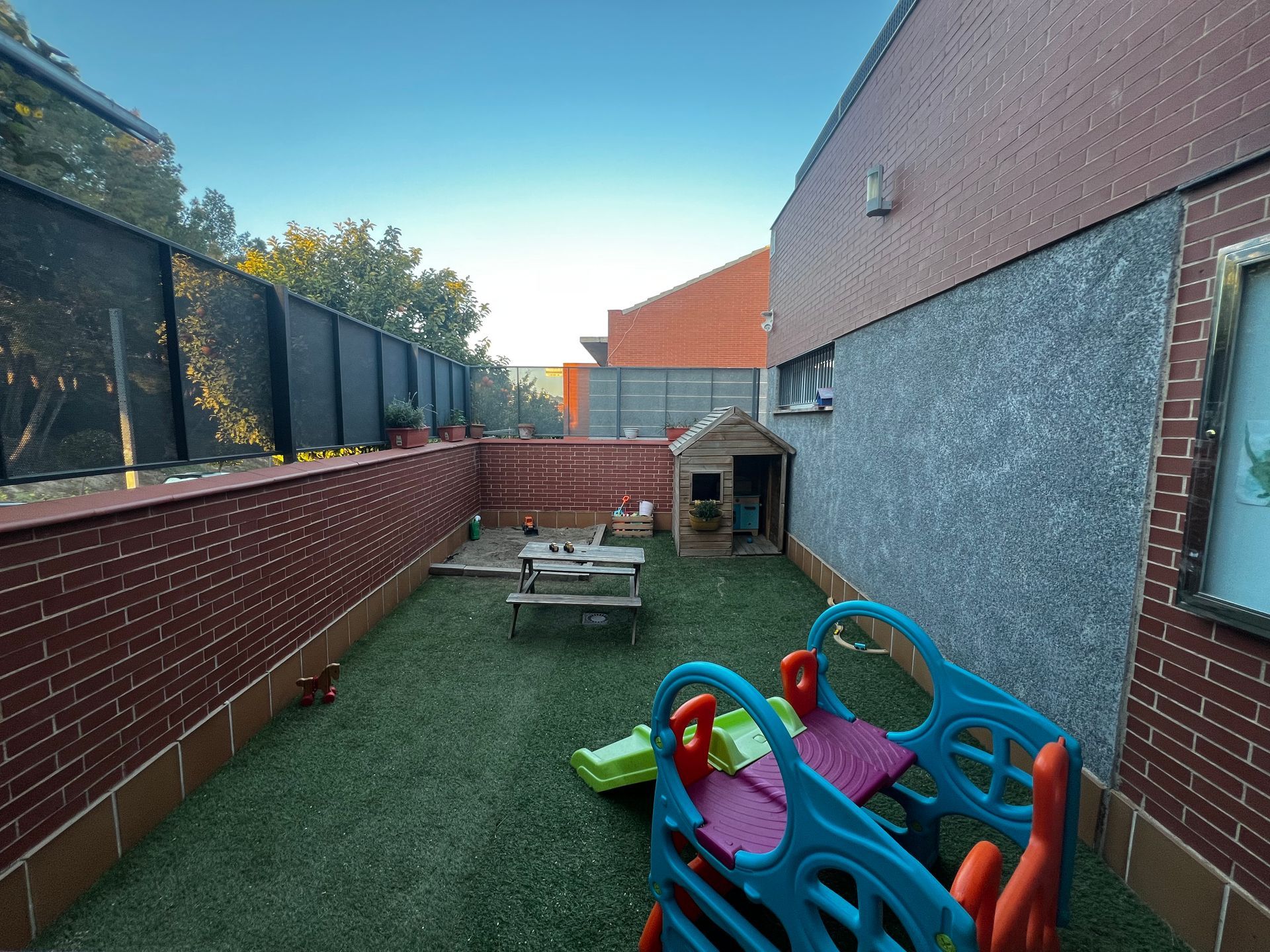 El centro tiene vistas exteriores a un bonito parque que es un lugar maravilloso para que los niños exploren y disfruten de la naturaleza. Es el lugar ideal para llevar a cabo actividades al aire libre como paseos, excursiones, juegos y actividades de aprendizaje. El colegio también cuenta con varias zonas exteriores, como patios y jardines, que ofrecen un ambiente ideal para el juego y la recreación al aire libre. En estos espacios, los estudiantes pueden jugar, practicar deportes o simplemente disfrutar del aire fresco y del contacto con la naturaleza. Además, el colegio tiene áreas verdes para practicar la jardinería y para que los estudiantes aprendan sobre la importancia del cuidado del medio ambiente.